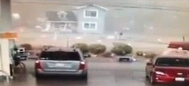 Πρόκειται για εικόνα από το καταστροφικό πέρασμα του ανεμοστρόβιλου από την πολιτεία. Η κάμερα ενός πρατηρίου καταγράφει πώς εξαφανίζεται ένα ολόκληρο σπίτι σε μία στιγμή.