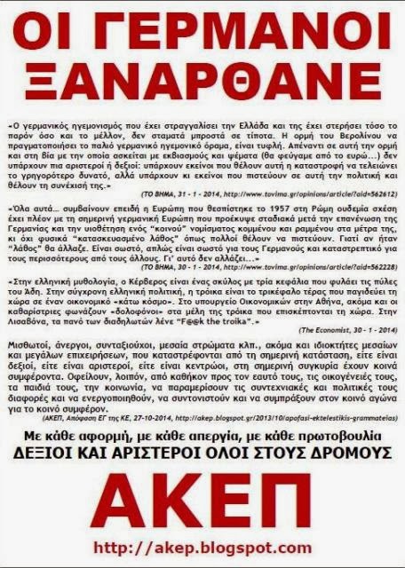 Στη σημερινή Ελλάδα, που είναι χωρίς καμία αμφιβολία μία από τις πλουσιότερες χώρες του κόσμου, με ιστορικό παρελθόν μοναδικό και λαϊκές αγωνιστικές παραδόσεις αξιοθαύμαστες, η αντιμετώπιση της οικονομικής κρίσης από τις πολιτικές των κυβερνήσεων Παπανδρέου-Παπαδήμου-Σαμαρά και της τρόικας έχει σαν αποτέλεσμα την όξυνση και τη μεγιστοποίηση των επιπτώσεων της οικονομικής κρίσης. Εκατομμύρια Ελληνίδες και Έλληνες βιώνουν τη φτώχεια, την εξαθλίωση, την καταστροφή.Σήμερα, οι κυβερνήτες και οι πολιτικοί τους σύμμαχοι λένε πως ο οικονομικός, πολιτικός και πολιτισμικός μαρασμός της πλειοψηφίας του ελληνικού λαού είναι αναγκαίο κακό. Μας λένε ψέματα.