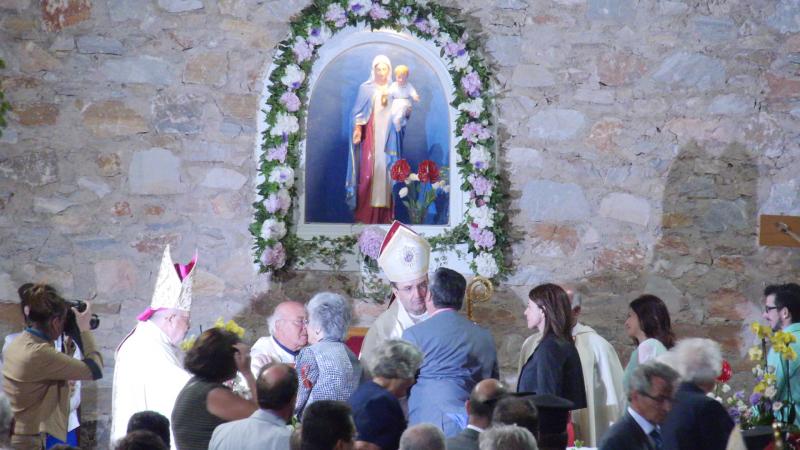 Στη Θεία Ευχαριστία προΐστατο ο μέχρι σήμερα Καθολικός Επίσκοπος Σύρου, Σεβασμιώτατος Φραγκίσκος Παπαμανώλης ενώ σε αυτόν συγχειροτονούντες υπήρξαν ο Αρχιεπίσκοπος των Καθολικών της Αθήνας, Σεβασμιώτατος π. Νικόλαος και ο Αρχιεπίσκοπος Νάξου – Τήνου και Μητροπολίτης παντός Αιγαίου, Σεβασμιώτατος π. Νικόλαος. Υπογραμμίζεται ότι παρέστησαν και άλλοι ιεράρχες της Ελλάδος.