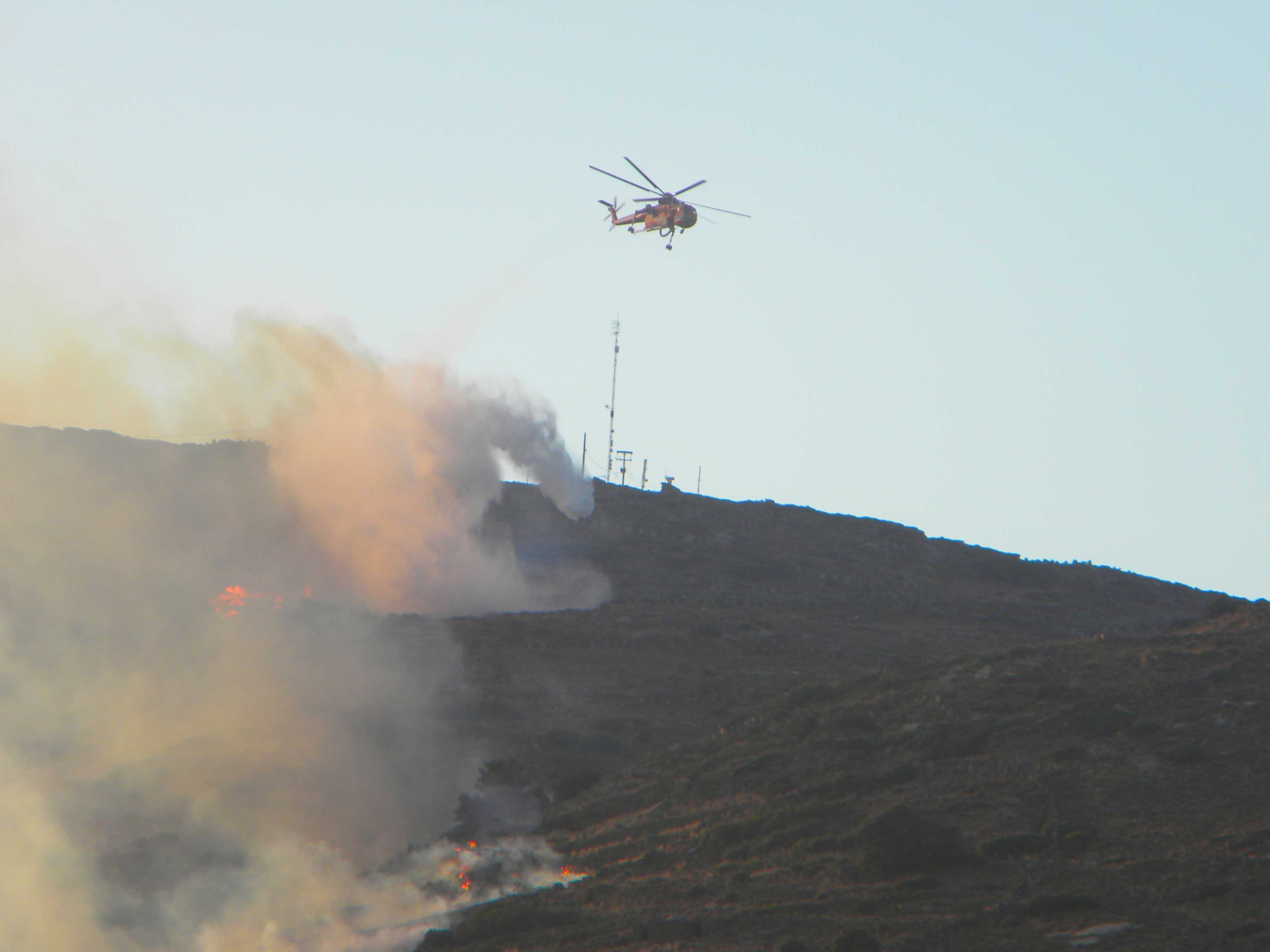 Λογω του ισχυρού ανέμου κλήθηκαν και έρχονται εναέρια μέσα από τον προϊστάμενο της πυροσβεστικής Χ. Παπαϊωάννου Άνδρου που είναι επικεφαλής της όλης επιχείρησης.